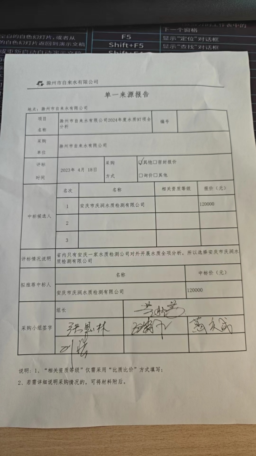 滁州市自来水有限公司进行的水质97项全分析招标/采购,递交文件截止时间有1家单位接受邀请并按时递交投标报价。